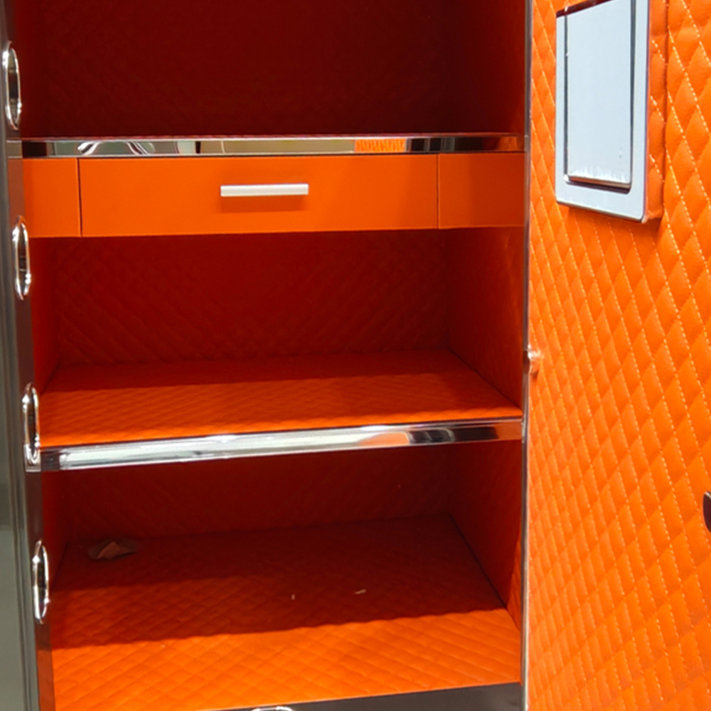 Featuring a premium dark chocolate exterior finish and a bright orange leather interior, the ZH-32F delivers a bold, luxurious look. Inside, it includes a jewelry drawer and a separate shelf, allowing organized storage of jewelry, cash, documents, passports, electronics, and other valuables.